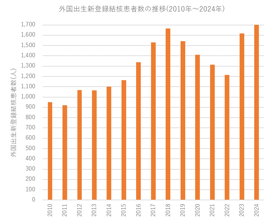2024年の外国出生新登録結核患者数は1,980人であった。